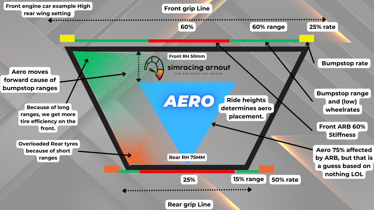 The front grip line is divided by anti-roll bar + bump stop range + wheel rates and bump stop rates (rubbers).