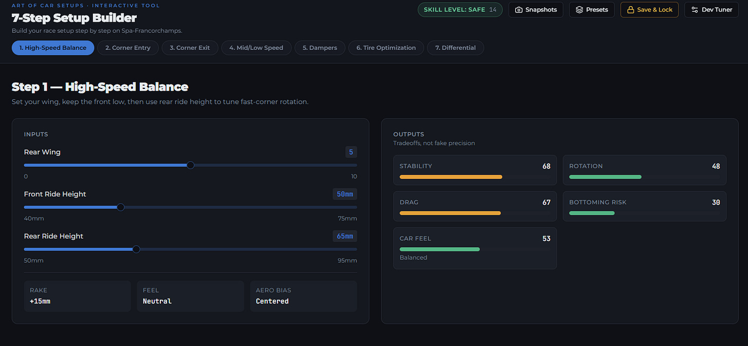 The best part is, I can create these prediction screens for every car in every sim. I do the test, and this screen is a part of my brain. You have answers to before you actually do the change.